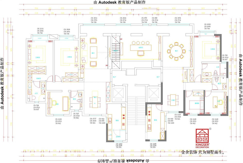 本項(xiàng)目是176平和210平兩戶(hù)打通,原始兩戶(hù)的戶(hù)型都是南北通透,采光通風(fēng)效果都非常不錯(cuò),缺點(diǎn)在于原始戶(hù)型樓梯位置在臥室,而且樓梯踏步高且進(jìn)深小,所以方案圍繞樓梯位置展開(kāi),兩個(gè)戶(hù)型邊上為臥房區(qū)靜區(qū),中間為會(huì)客,品茶等服務(wù)空間