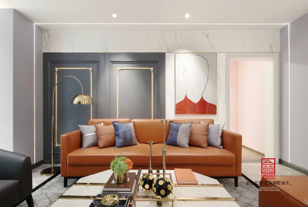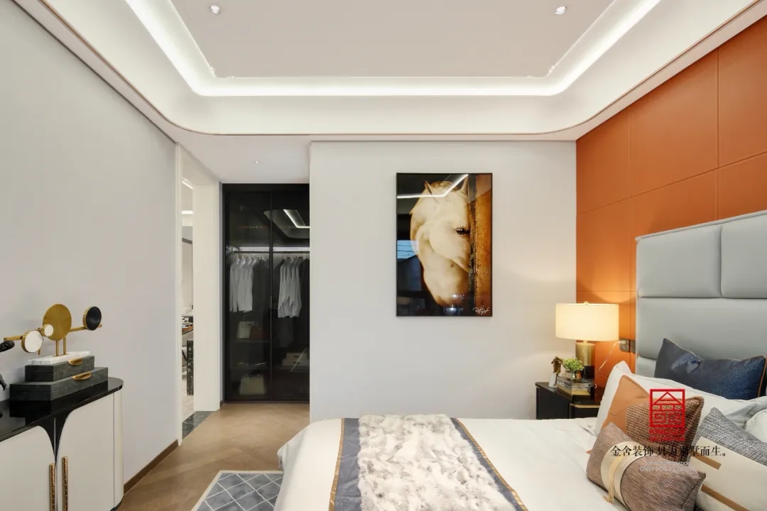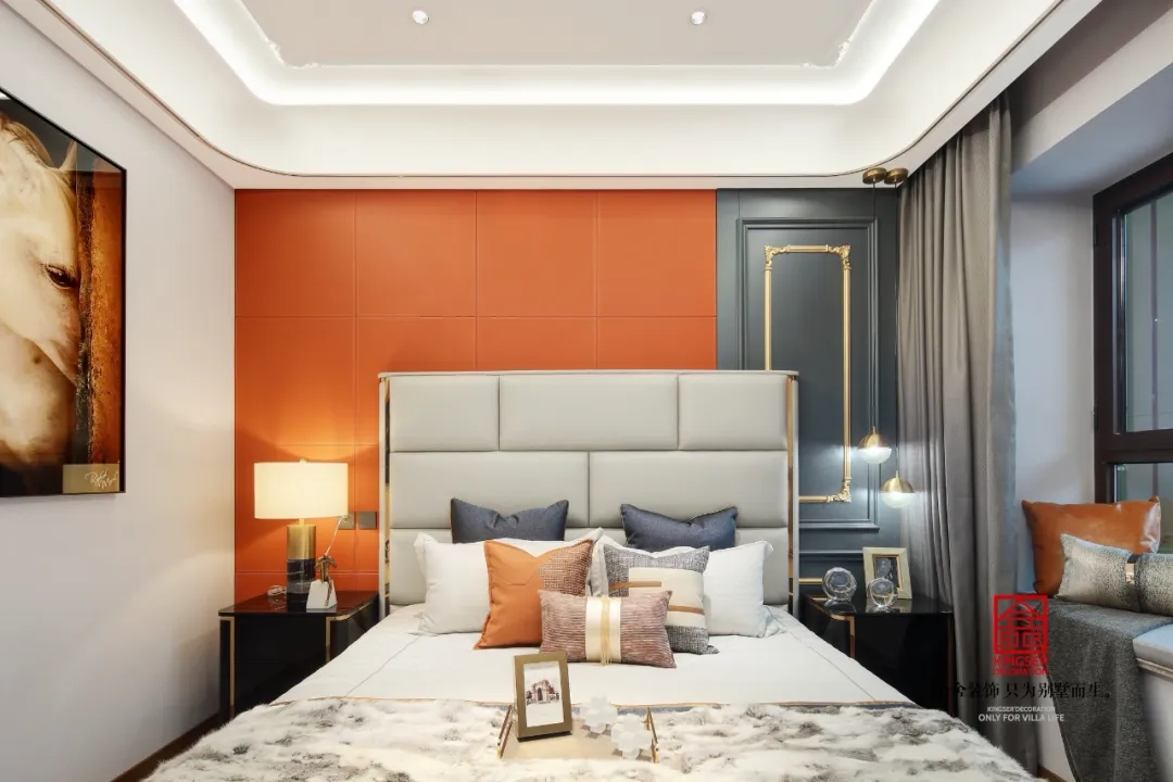 色彩搭配再次成為此空間中的亮點(diǎn),各種深淺的藍(lán)、橙色層次交錯(cuò),渲染出獨(dú)特而濃郁的藝術(shù)氣質(zhì)。簡(jiǎn)化的線條和纖細(xì)的幾何圖形,幾筆便勾勒出現(xiàn)代的摩登與簡(jiǎn)潔。