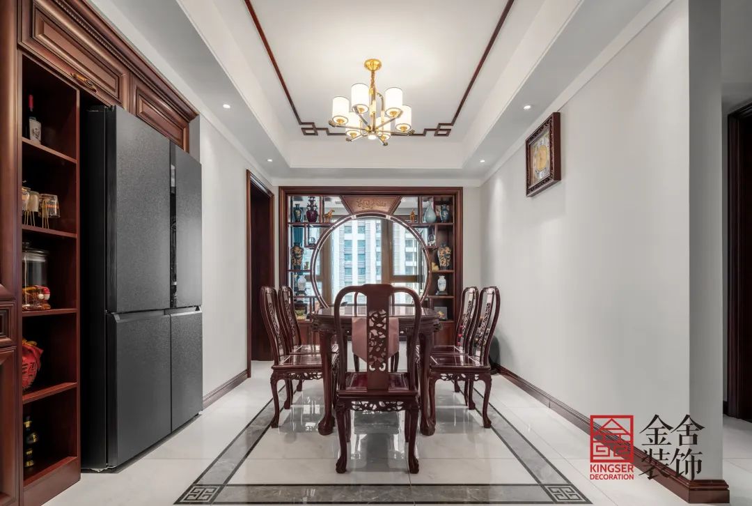 本案的設(shè)計(jì)不僅僅是對(duì)新中式風(fēng)格的掌控,更是對(duì)生活、家庭注滿了期待,凝練時(shí)光中的永恒。不拘于類別,審美不限于形式,古法之中,穿越時(shí)代之潮;在文化與古的理解之上,循古人履易,玩古出新。