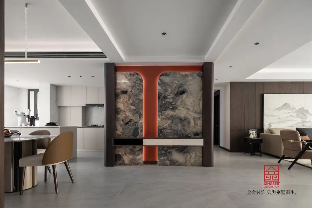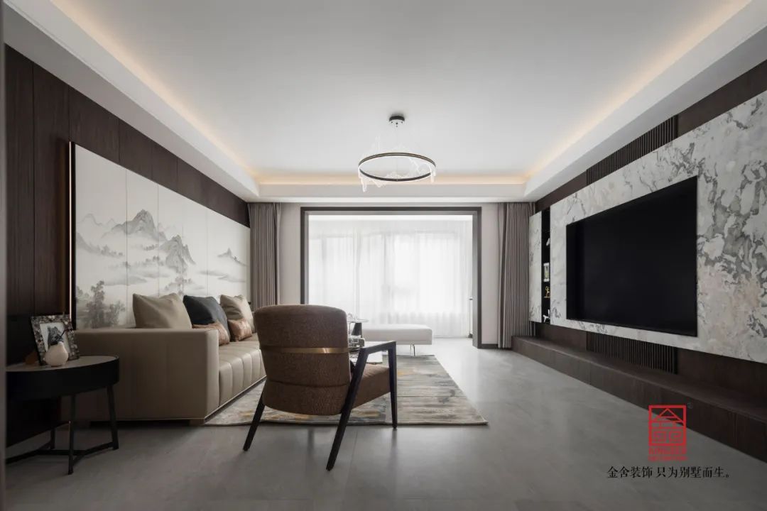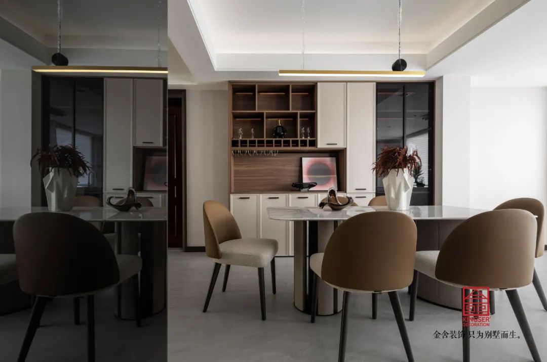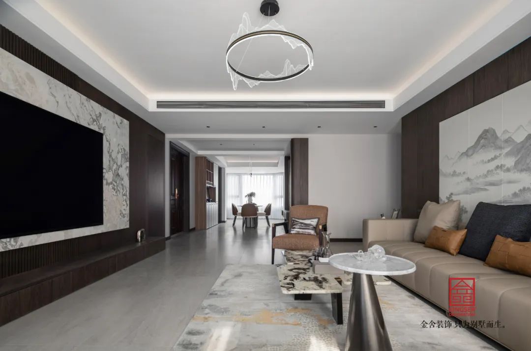 簡化和概括傳統(tǒng)古典中式的形式,采用古為今用、中西合璧的設(shè)計(jì)手法,打破了傳統(tǒng)中式可能帶來的沉悶和厚重感,從而給空間注入了時(shí)尚現(xiàn)代的氣息。