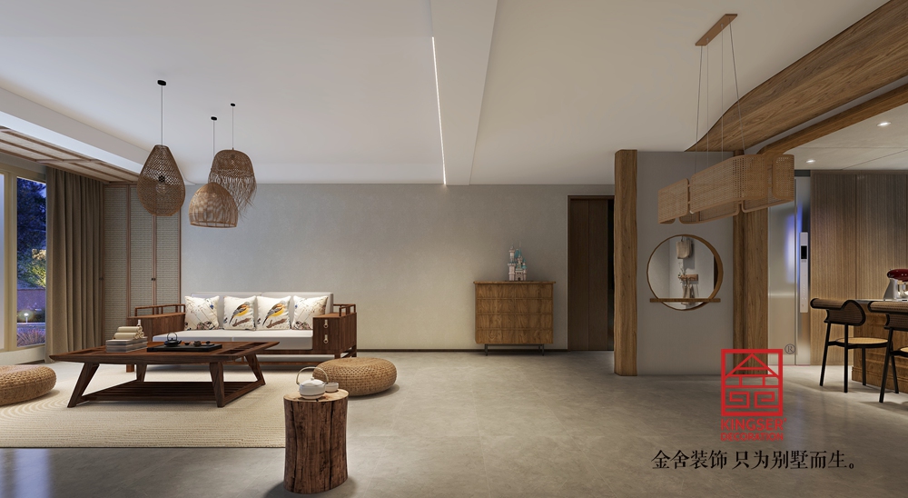 用溫潤的實木和古風裝飾營造出一方深邃而幽靜的安放心靈之所。