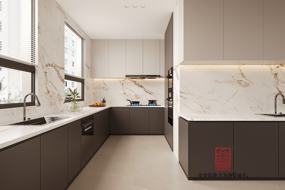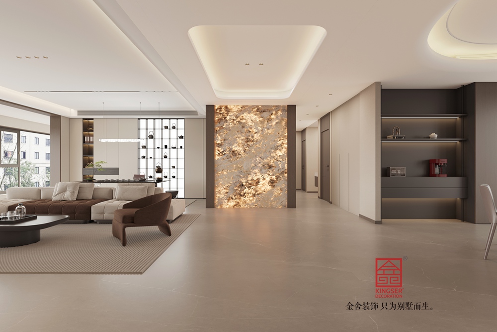 大理石玄關(guān)墻質(zhì)感鮮明,自然舒展的紋理,展現(xiàn)出生命無(wú)限的張力和空間的寬廣無(wú)垠。