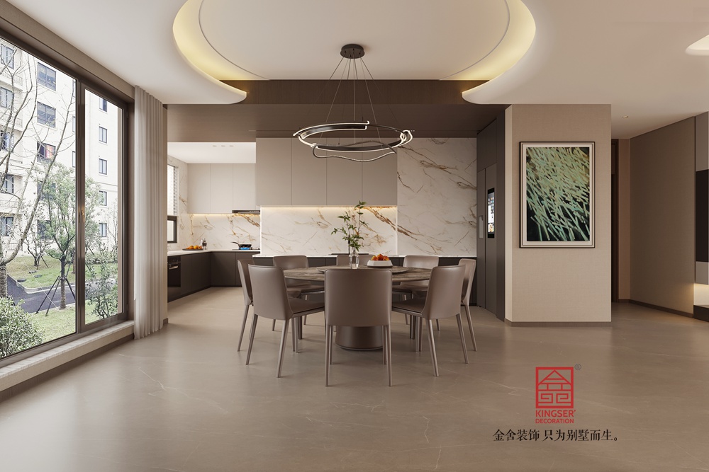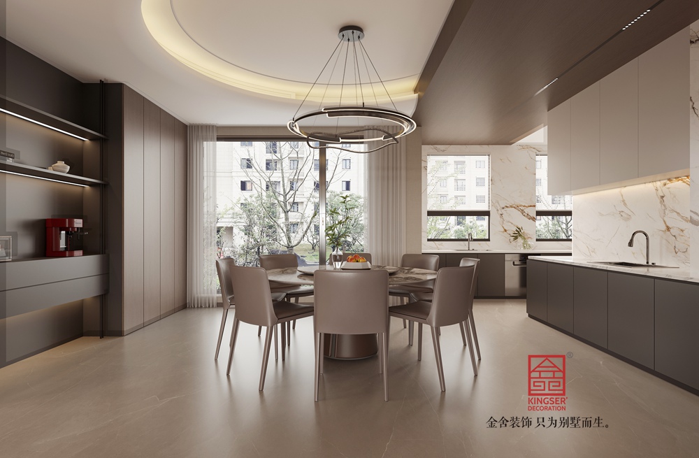 客廳優(yōu)雅、沉靜及治愈的氛圍感,貫穿整個(gè)空間的動(dòng)線。柔軟舒適的轉(zhuǎn)角沙發(fā),一種愜意而高雅的生活節(jié)奏,游走于光影游離間,浸潤(rùn)于日常。