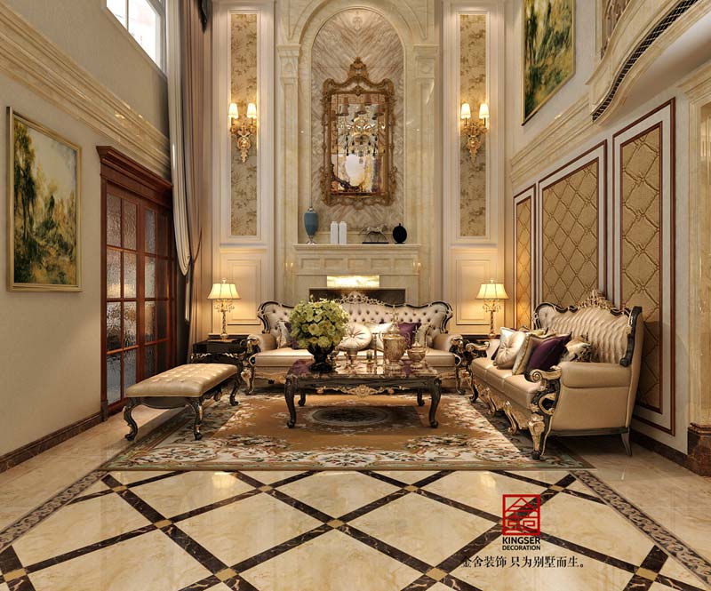 ?設計說明:本案為金舍裝飾-保定裝修香邑瀾山270平米歐式風格效果圖,歐式風格強調(diào)以華麗的裝飾、濃烈的色彩、精美的造型達到華貴的裝飾效果。歐式客廳頂部用大型燈池,并用華麗的枝形吊燈營造氣氛。門窗上半部做成弧形,并用帶有花紋的石膏線勾邊,室內(nèi)則有壁燈造型。墻面用優(yōu)質(zhì)乳膠漆,以襯托豪華效果。地面材料以石材和地板為主。歐式客廳用家具和軟裝飾來營造整體效果,深色的像木和楓木家具,色彩鮮艷的布藝沙發(fā),都是本案歐式客廳里的主角。還有浪漫的羅馬簾,精美的油畫,制作精良的雕塑工藝品,都是點染歐式風格不可缺少的元素。