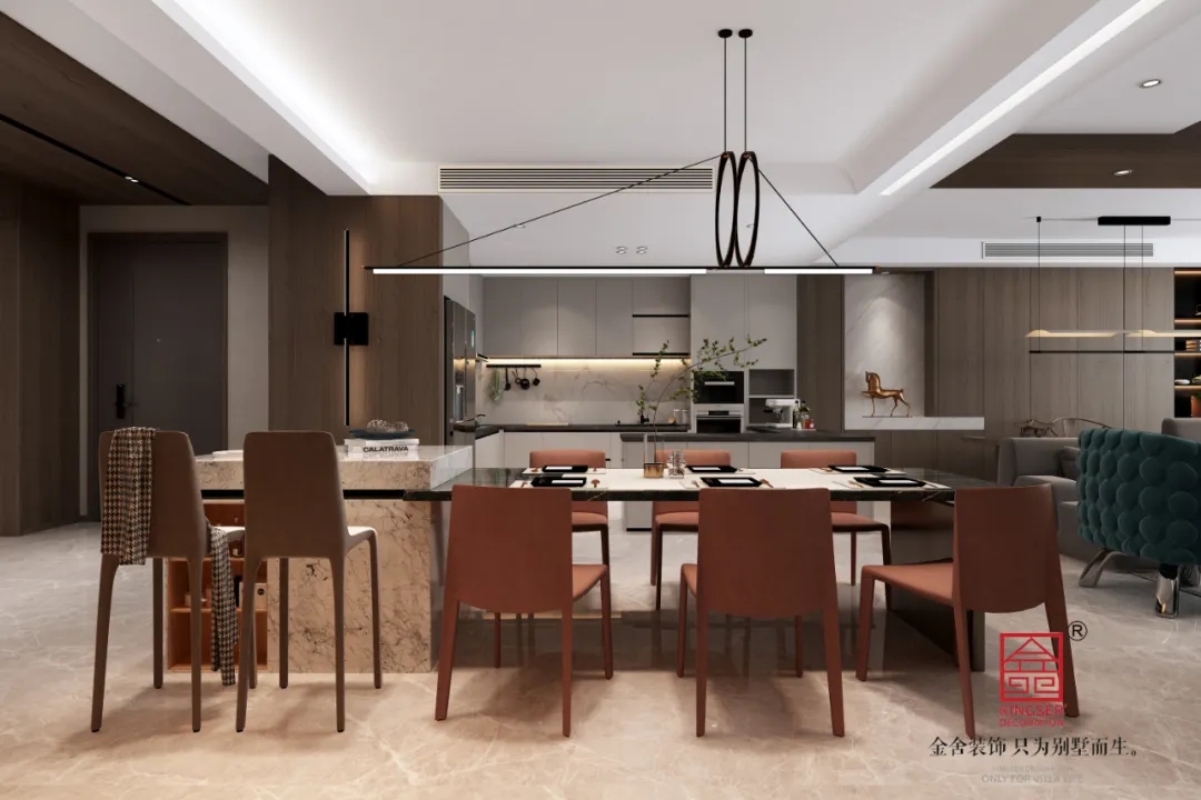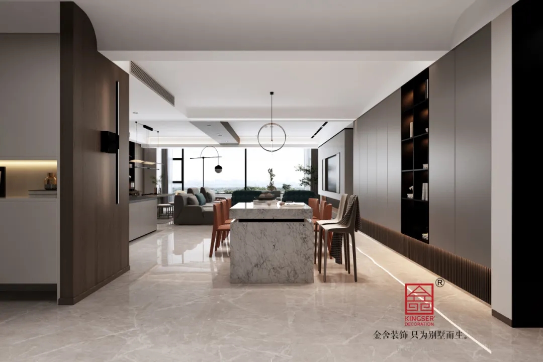 此案例為金舍裝飾-濱河花園300平米別墅輕奢風格裝修效果圖。說到香港,腦海中立馬浮現(xiàn)出蔚藍的維多利亞港灣,金色的光輝映在深沉的海面,折射出婆娑的浮華光芒,將香港的繁榮璀璨盡收其中...... 本案也是擯棄了豪奢的負擔,以點睛之筆達成對于細節(jié)的把握,凝練出大都會生活的格調。大理石、金屬,實木,以及充滿質感的優(yōu)質布藝......皆精選優(yōu)質材料。仿佛把維港的靜謐與璀璨帶入眼前。