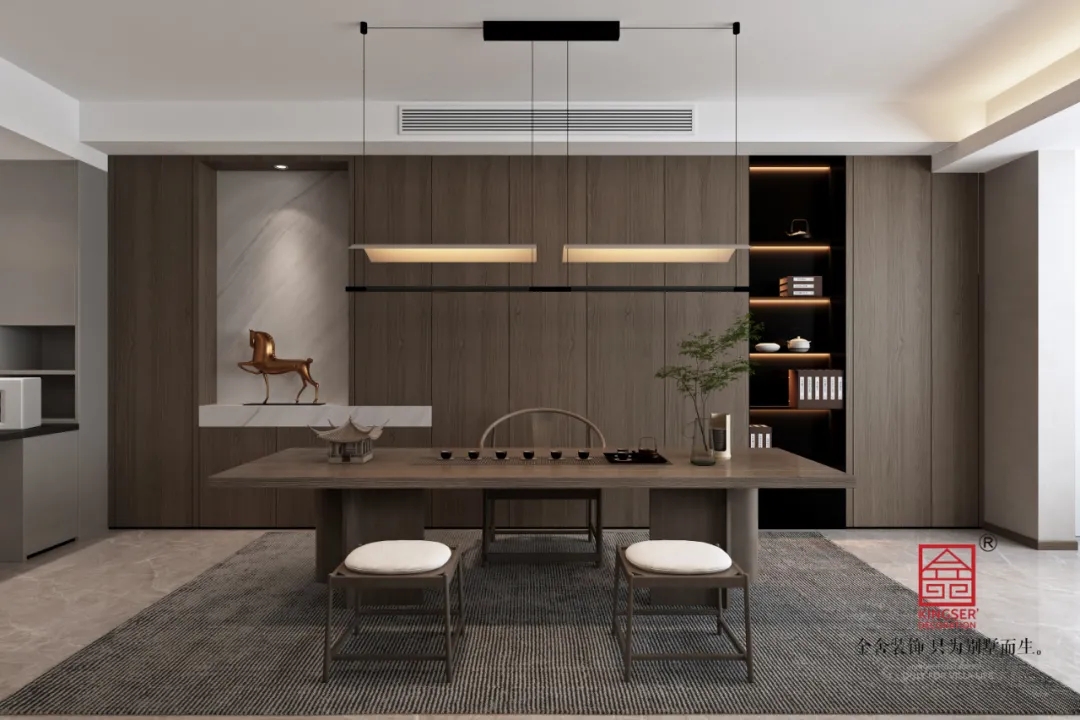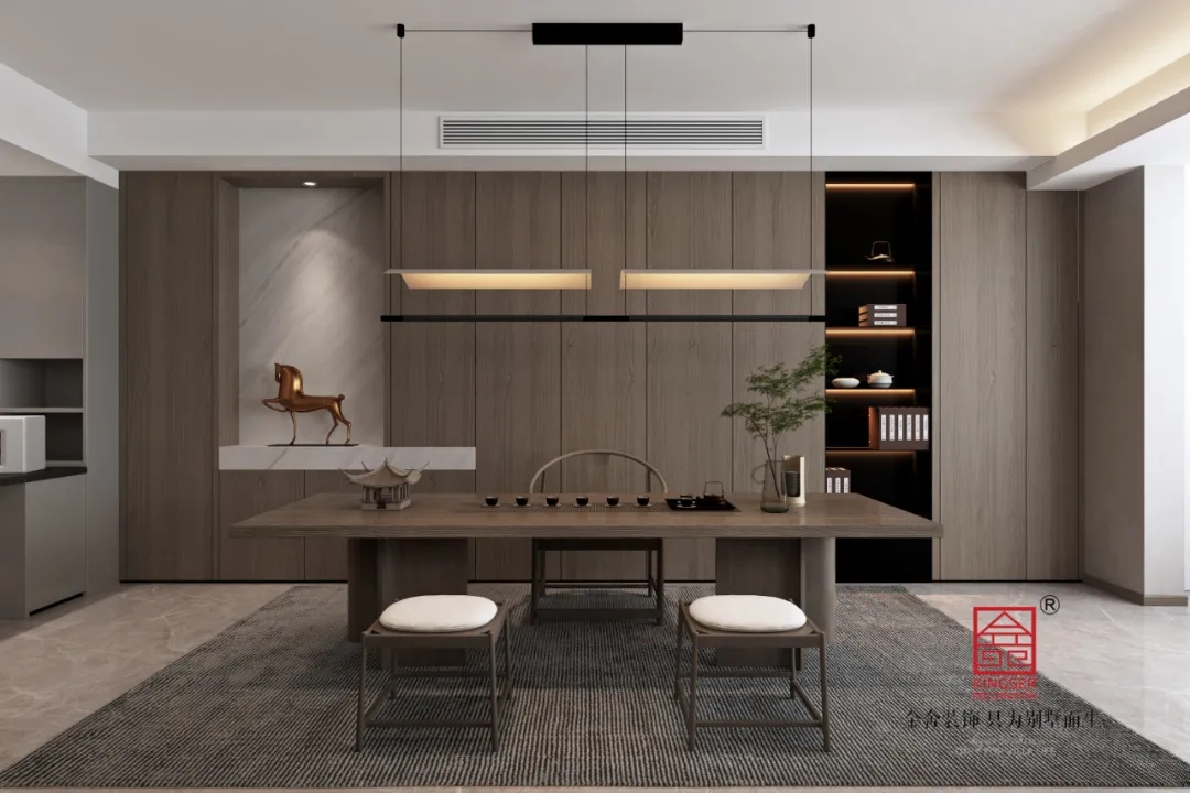 茶室的設計古典莊重,有著內(nèi)斂卻強烈的表達欲望,仿佛間接向主人傳達“自信即是美”的闊達,禮贊生活格調,于一絲靜謐恬淡中感受簡潔外表下的精致。