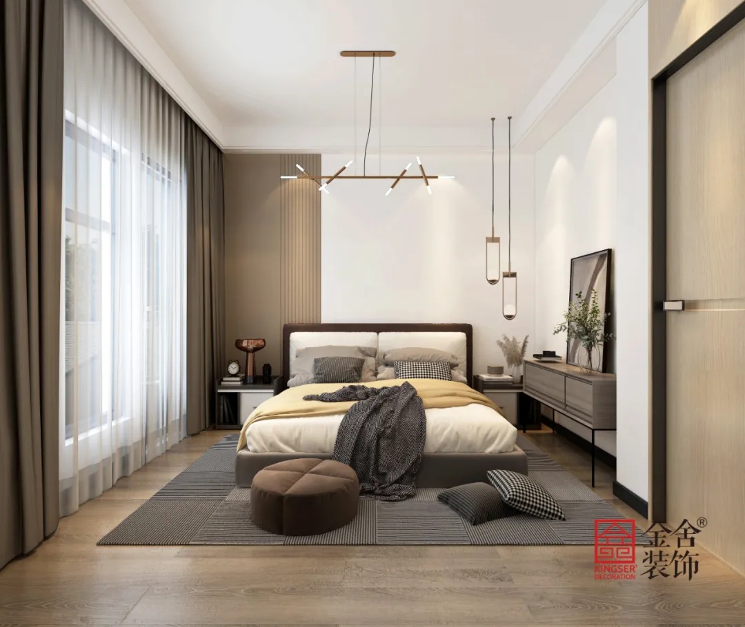 幾個臥室整體色調統(tǒng)一,造型帶有現代主義風潮的處理手法,暖暖的感覺舒適而溫馨,大面積的白色調和柔和的灰調相得益彰,一盞能拉下夜幕的明燈,一對天長地久的相知之人,就是空間的魂。