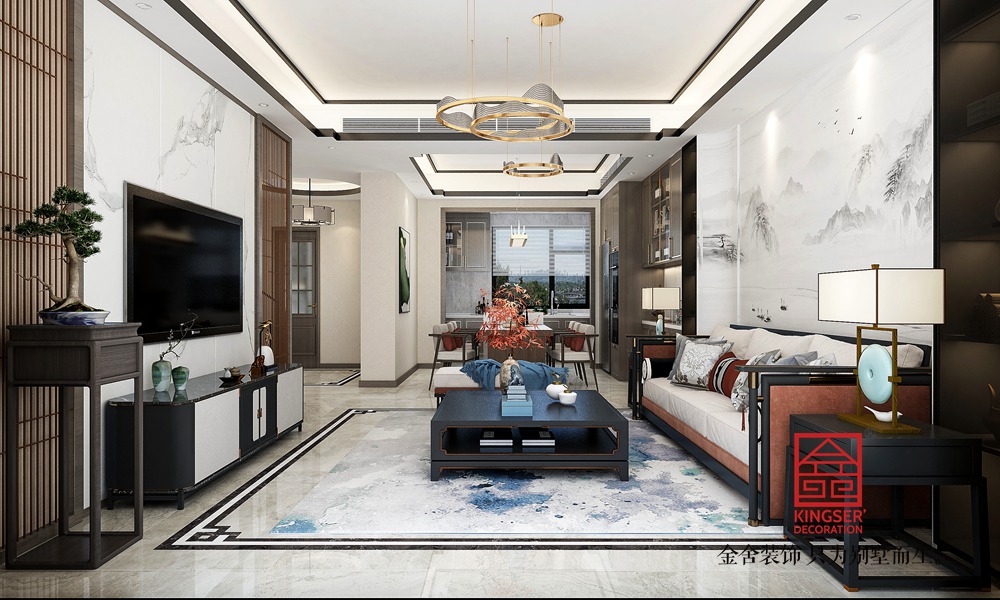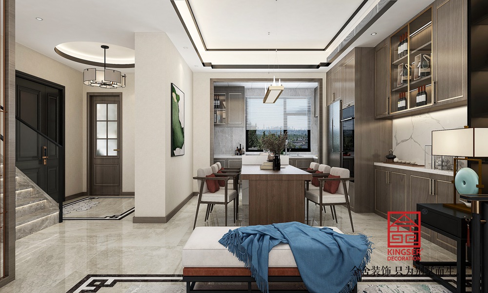 此案例為石家莊裝修公司-漢王府200平米新中式風(fēng)格裝修效果圖。項(xiàng)目采用新中式風(fēng)格,汲取古韻歷史文化客廳以當(dāng)代藝術(shù)筆觸傳古承今,凝練傳統(tǒng)文脈精髓,承襲中軸對(duì)陣儀范,用中正端雅的線條,排布禮序莊重的基調(diào)??蛷d闊綽端正,摒棄傳統(tǒng)中式的沉重感,保留中式的對(duì)稱美,凸顯視覺開闊感。餐廳將餐桌和島臺(tái)融合,北方的冬天,一家人圍坐在一起,喝一杯紅酒或飲一杯清茶,中西文化竟如此的和諧交融。主臥以中式原木色系為主要基調(diào),點(diǎn)綴以緋紅抱枕,視覺上顏色高度和諧,悄然流露一份典雅與精致的美感。兒童房的設(shè)計(jì)以簡(jiǎn)潔私密和其喜好搭配時(shí)尚的元素打造獨(dú)立個(gè)性的空間,享受屬于自己的自由空間。
