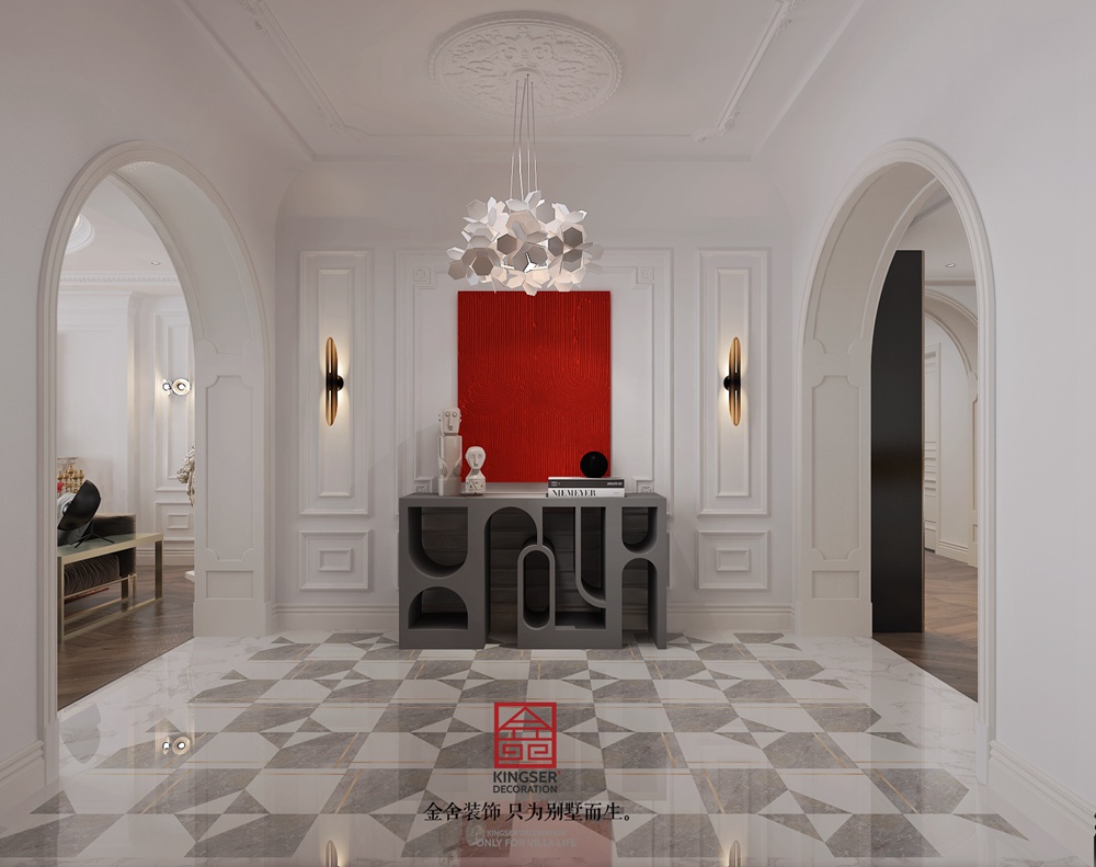 設(shè)計(jì)說明:此案例為石家莊裝修公司-恒大華府280平米現(xiàn)代法式裝修效果圖。一切美好的藝術(shù)都不止于表面的美麗,藝術(shù)是生活的再現(xiàn),也是情感的表現(xiàn),亦是人們對(duì)生活保持熱情的表達(dá)。此項(xiàng)目以通透的美學(xué)強(qiáng)化法式浪漫的空間意向,高端品牌的家具、品味卓然的藝術(shù)品、璀璨晶瑩的燈飾,充盈空間細(xì)節(jié)上的獨(dú)到之處、共同演繹現(xiàn)代美學(xué)生活的雅奢氛圍。