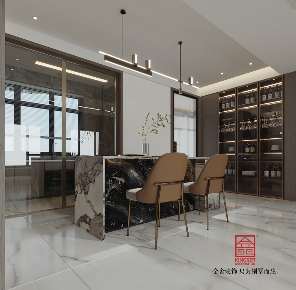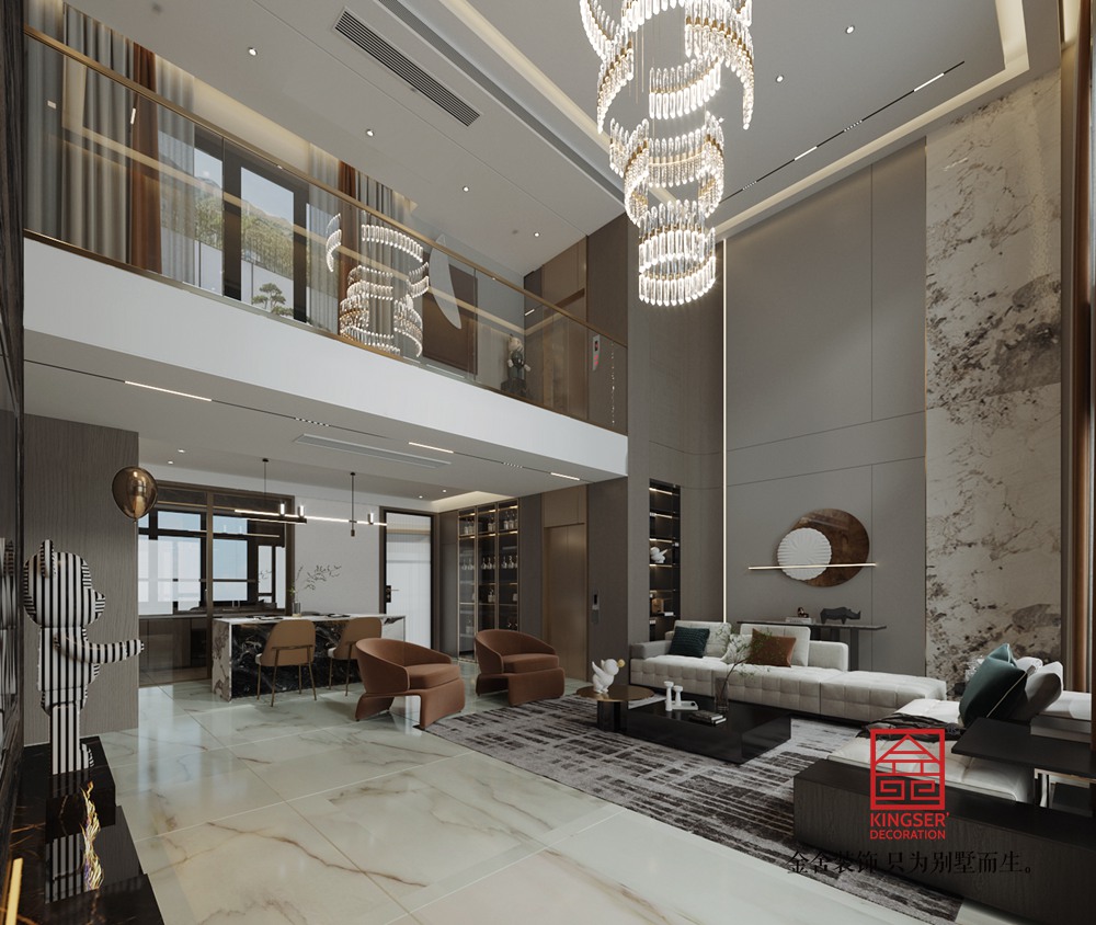 設(shè)計理念: 本案彌漫著自然主義的基調(diào),肌理選材成為空間氣質(zhì)的導語。原木與大理石的奢華詮釋簡約現(xiàn)代卻不失雅致的造型,空間的層次感在層疊的燈具、簡潔的線條中拉滿,沉穩(wěn)而靈動。