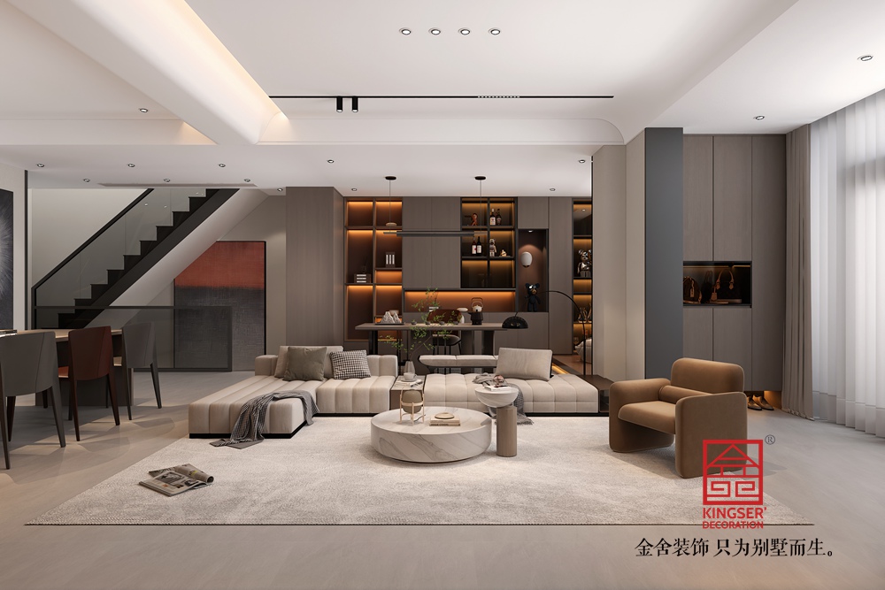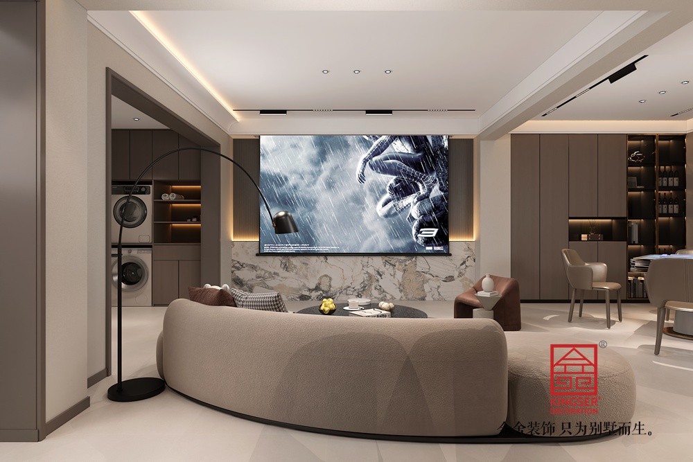 設(shè)計說明:此案例為石家莊裝修公司-秀水名邸270平米現(xiàn)代簡約風(fēng)格裝修效果圖。本案現(xiàn)代簡約風(fēng)格的居室重視個性和創(chuàng)造性的表現(xiàn),即不主張追求高檔豪華,而著力表現(xiàn)區(qū)別于其他住宅的東西。住宅空間多功能是現(xiàn)代室內(nèi)設(shè)計的重要特征。與主人興趣愛好相關(guān)聯(lián)的功能空間包括家庭影音室、茶室、健身角、電競工作室等。這些個性化的功能空間完全可以按主人的個人喜好進行設(shè)計,從而表現(xiàn)出與眾不同的效果。