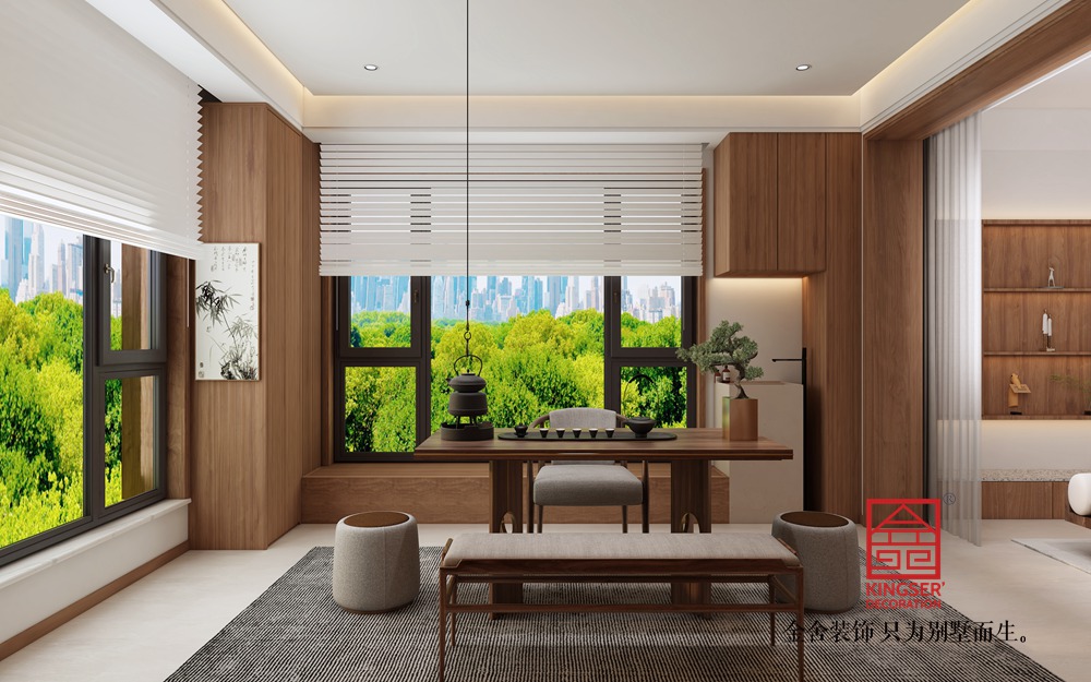 設(shè)計(jì)說明:此案例為石家莊裝修公司-國仕山150平米新中式風(fēng)格裝修效果圖。風(fēng)格偏中古又融合了一些中式元素,在空間上盡可能地?cái)U(kuò)大客廳活動(dòng)空間,使動(dòng)線流暢,平時(shí)是兩口子住,用作養(yǎng)老,所以在設(shè)計(jì)上盡可能地方便兩位客戶的生活,在衛(wèi)生間配備養(yǎng)老設(shè)施,方便使用,贈(zèng)送的露臺位置整體包起來了,做了一個(gè)茶室,男主人有品茶的習(xí)慣,整體結(jié)構(gòu)沒有大的改動(dòng)。戶型南北跨度較大,空間寬敞,整體規(guī)劃過后空間利用合理