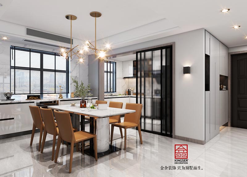 客廳、餐廳、廚房等空間都可以打通,去掉厚重的隔斷墻,用開(kāi)放式的空間,去打造更開(kāi)闊、明亮、寬廣的空間,這樣小戶型也可以有大別墅的感覺(jué)氛圍。